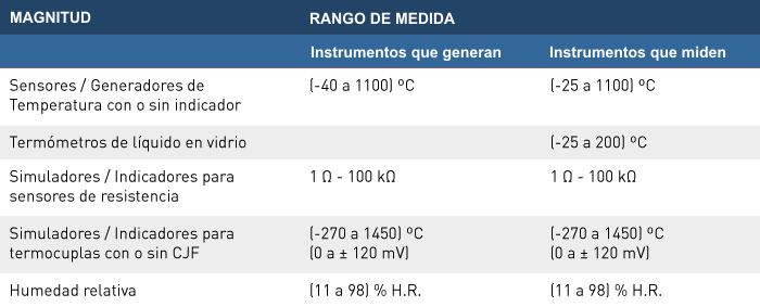 Los alcances y las capacidades del laboratorio, permiten calibrar la generalidad de instrumentos utilizados en la industria. A continuación se transcribe el alcance resumido y un listado parcial de instrumentos de temperatura y humedad que pueden ser calibrados en nuestro laboratorio.